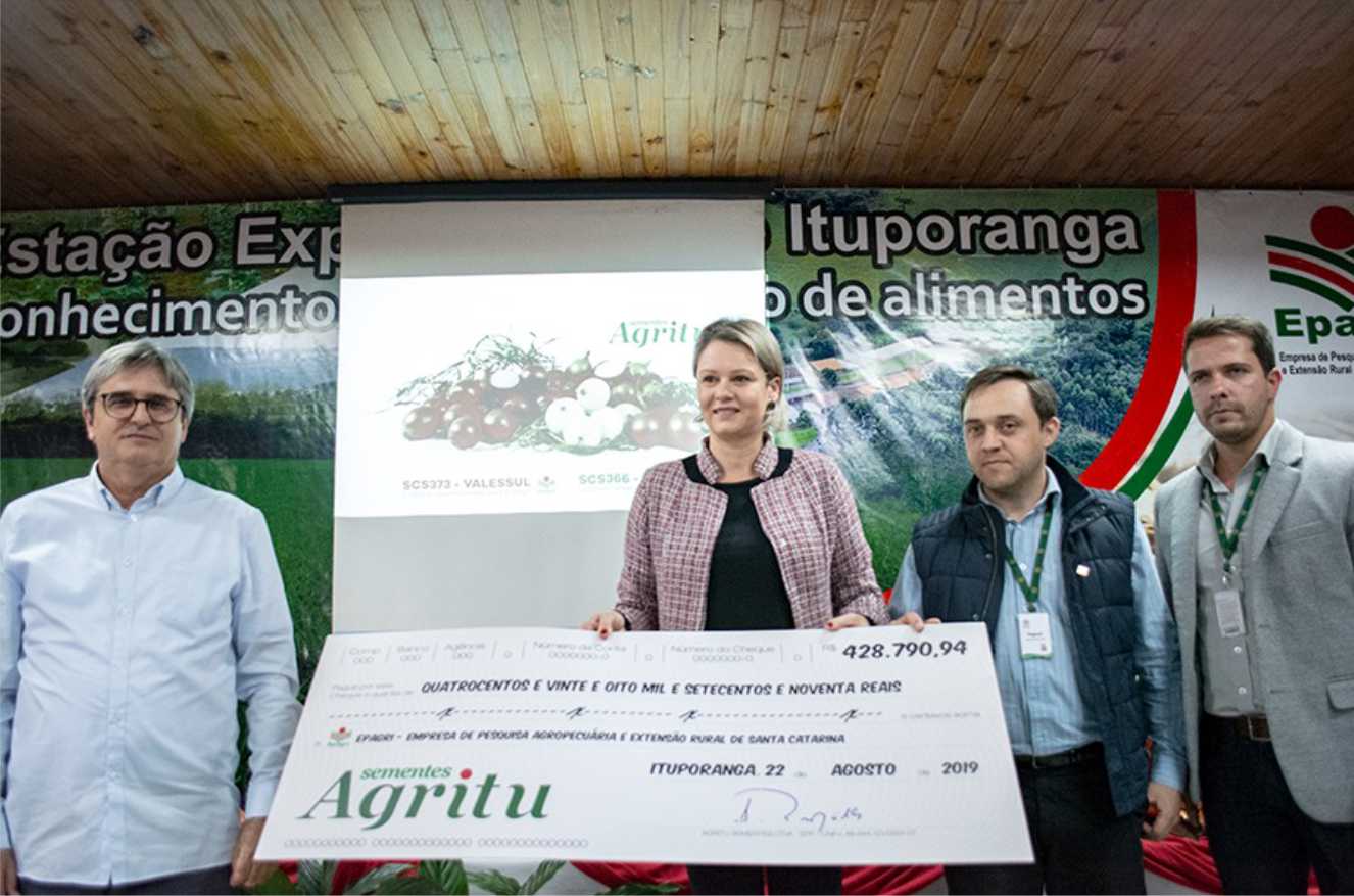 Foram R$ 428.790,00 em royalties, sobre a venda de sementes dos cultivares Valessul e Poranga, em que a Agritu Sementes foi selecionada por meio de chamadas públicas para realizar a sua comercialização com exclusividade.
