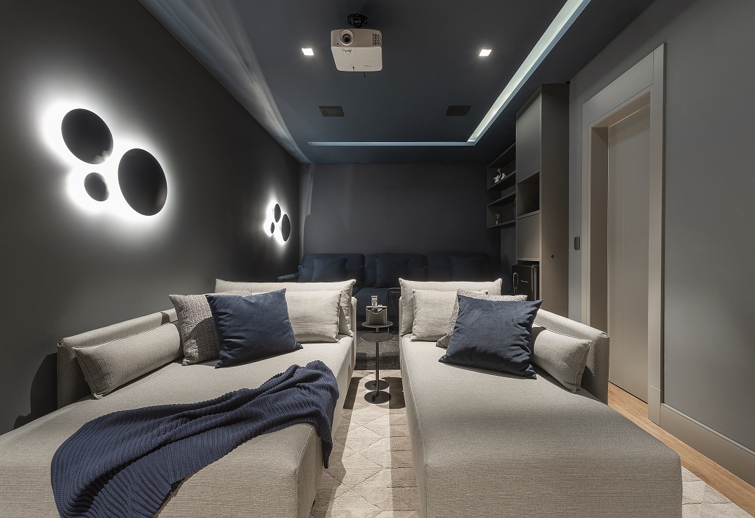 Cinema: no andar superior projetamos um cinema, um ambiente aconchegante e acolhedor para os momentos em família. Um diferencial!