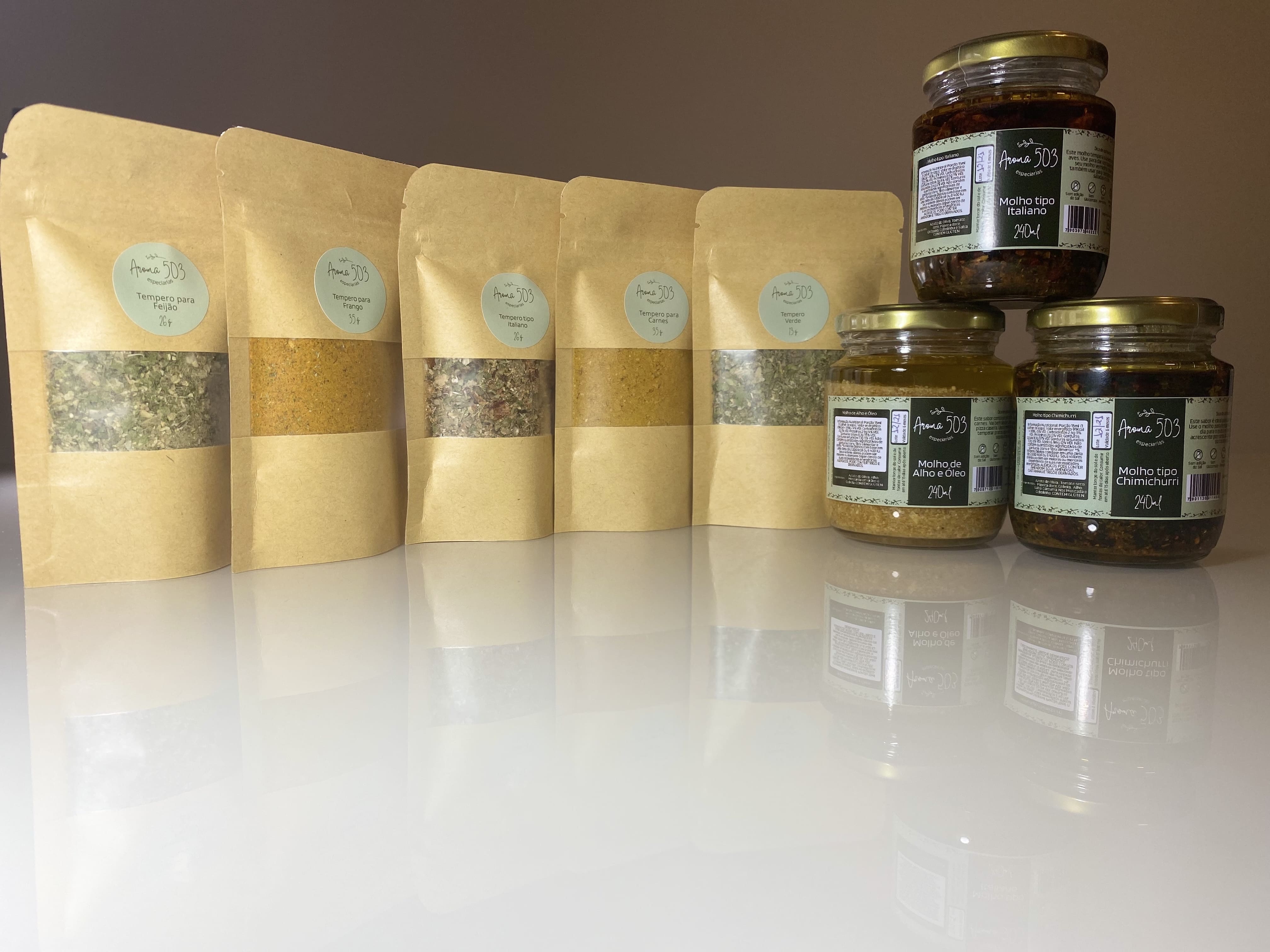Buscando ingredientes naturais e saudáveis, os produtos da Aroma 503 são produzidos artesanalmente e não possuem adição de conservantes, sal ou glutamato monossódico. “Nossos temperos são elaborados para trazer aquele gostinho de comida caseira e feita com amor, sem agredir nosso corpo”, comenta.