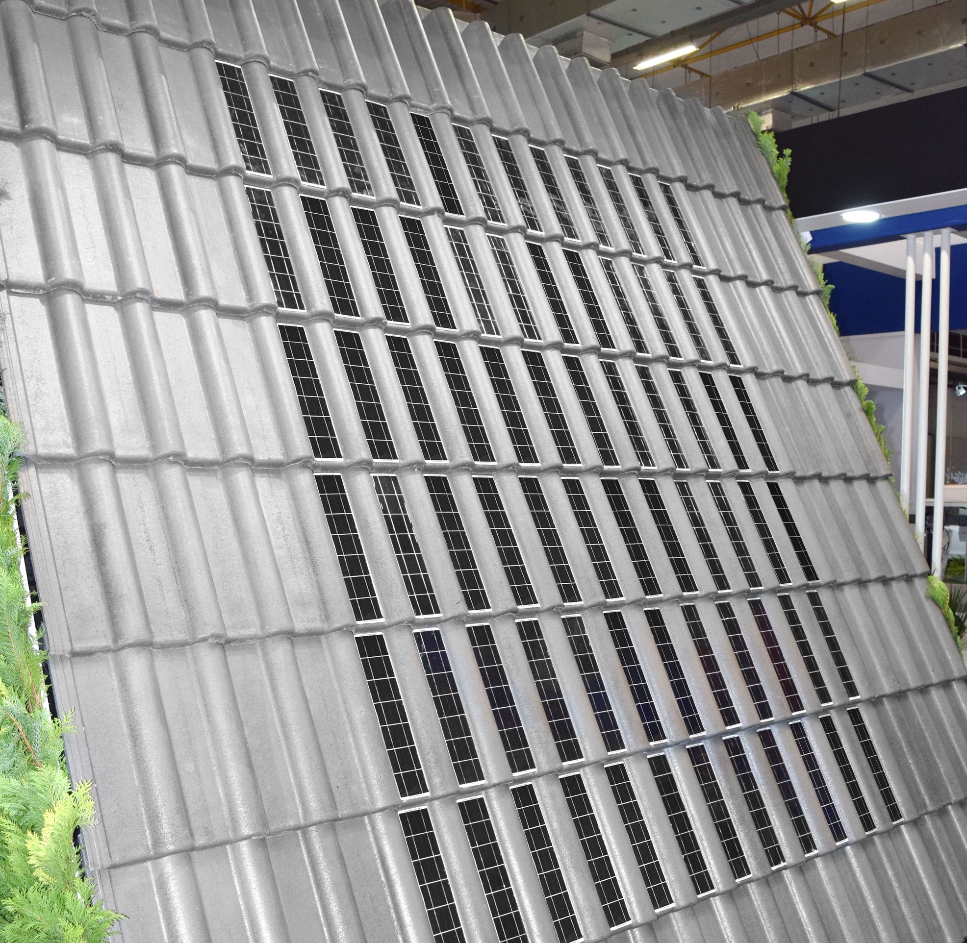 De acordo com a Eternit, o número de telhas fotovoltaicas necessário para uma residência vai depender da quantidade de energia que se deseja produzir, da localização do imóvel, inclinação e orientação com relação ao sol, entre outros fatores. Uma residência pequena pode ter em torno de 100 a 150 telhas fotovoltaicas de concreto. Casas de médio e alto padrão, de 300 a 600 unidades ou mais. O restante do telhado é feito com telhas comuns, complementadas com acabamentos como cumeeiras, laterais, espigão do mesmo modelo, com mesmo material e encaixes perfeitos, garantindo a melhor estética do telhado.