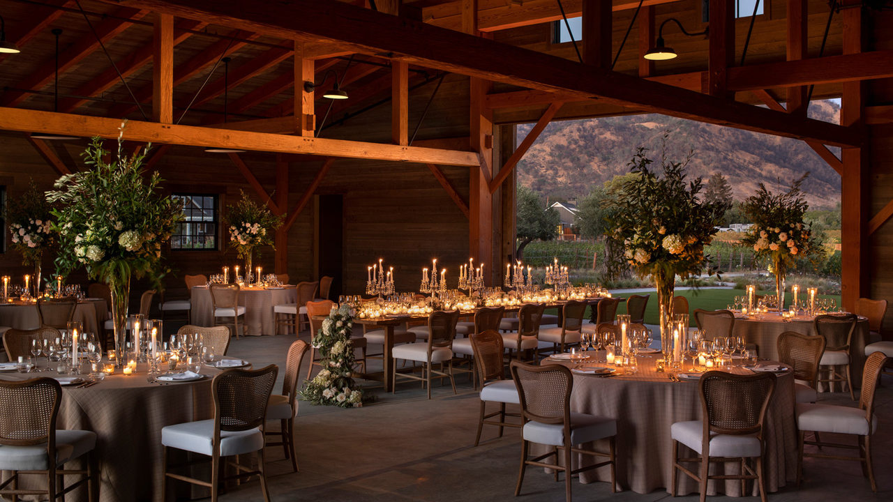 A jornada começa com vistas ininterruptas das montanhas durante o jantar de boas-vindas no Vineyard Barn, espaço do Four Seasons ambientado num celeiro com arquitetura rústica que incorpora a rica herança agrícola de Napa.