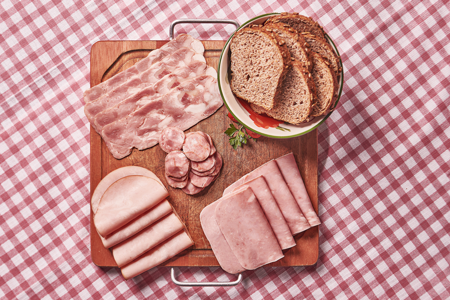 Embutido de peito de frango fatiado, linguiça tipo calabresa reta sem pele, embutidos de peito de frango, embutidos de peito de frango fatiado (oval), lombo tipo canadense, embutidos de peito de frango fatiado, embutido de peito de peru fatiado, apresuntado fatiado, presunto fatiado, linguiça tipo calabresa fatiada, bacon cubos (embutido de carne suína sabor bacon), presunto, apresuntado.