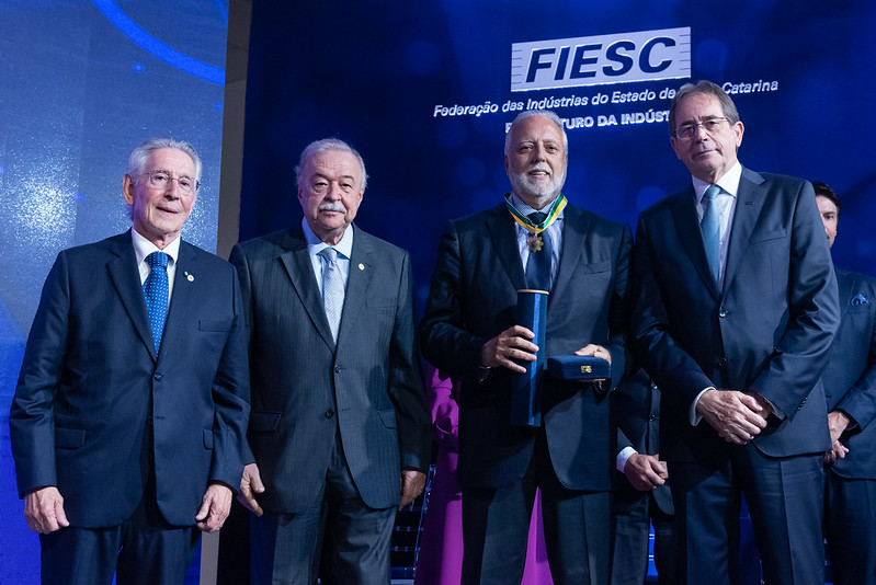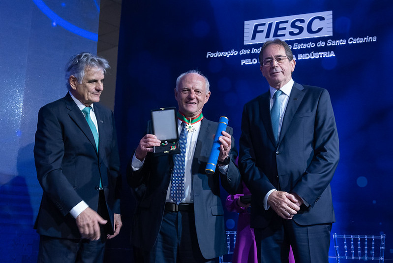 “Hoje, por meio da Ordem do Mérito, fazemos a justa – e necessária – distinção às pessoas que fazem a indústria ser o motor do desenvolvimento catarinense. Além do sucesso empresarial, eles têm um histórico de envolvimento com suas comunidades. Juntas, as indústrias que eles dirigem representam o sustento de milhares de famílias catarinenses”, afirmou o presidente da FIESC, Mario Cezar de Aguiar. A comenda catarinense foi entregue aos empresários: Antônio Deoclesio Pavei, Daniela Tombini, Eduardo Ernesto Zortéa, Felipe Hansen e Walter Osli Koerich. O empresário Cesar Gomes Junior recebeu a Ordem do Mérito Industrial da Confederação Nacional da Indústria (CNI).