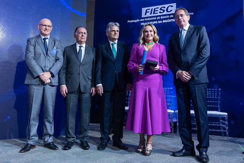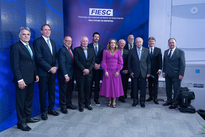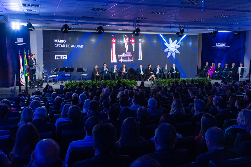 Na solenidade de entrega da Ordem do Mérito Industrial de SC, realizada pela FIESC, nesta sexta, dia 24, os discursos reforçaram o protagonismo dos industriais e das mulheres e o potencial que o Brasil oferece para crescer, apesar dos desafios no cenário internacional e do quadro interno de inflação e juros altos