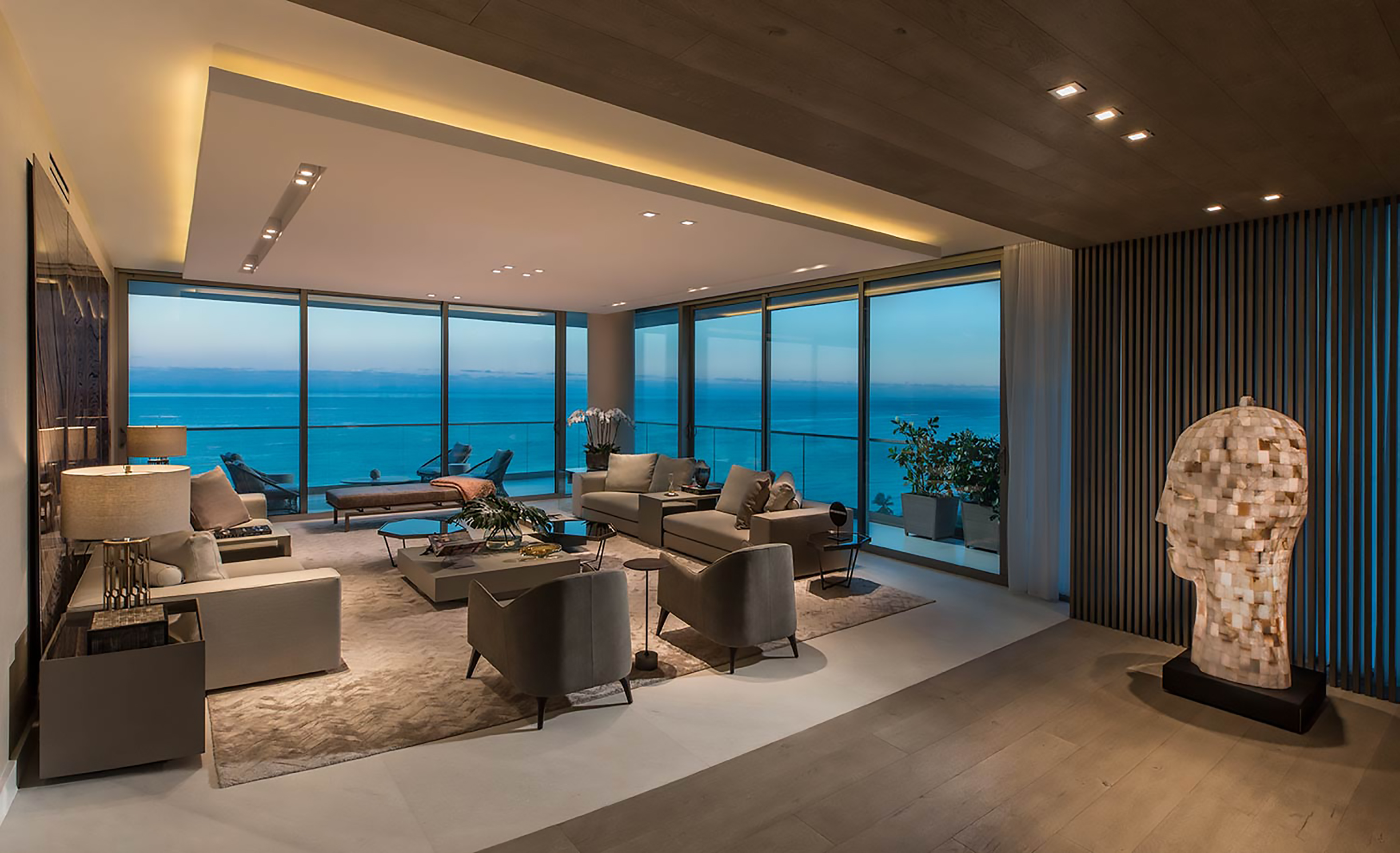 O arquiteto Sig Bergamin é quem assina a decoração de interiores das 9 unidades destinadas especificamente para compradores brasileiros no sofisticado Oceana Bal Harbour, em Miami. Com opções de plantas de até três dormitórios e metragens que variam entre 214 m² a 388 m², sem incluir o terraço, é preciso investir, pelo menos, US$4 milhões para adquirir um dos apartamentos. Além disso, há o custo do projeto do arquiteto brasileiro: a partir de US$700 mil e nele está incluso toda a parte de mobiliário.