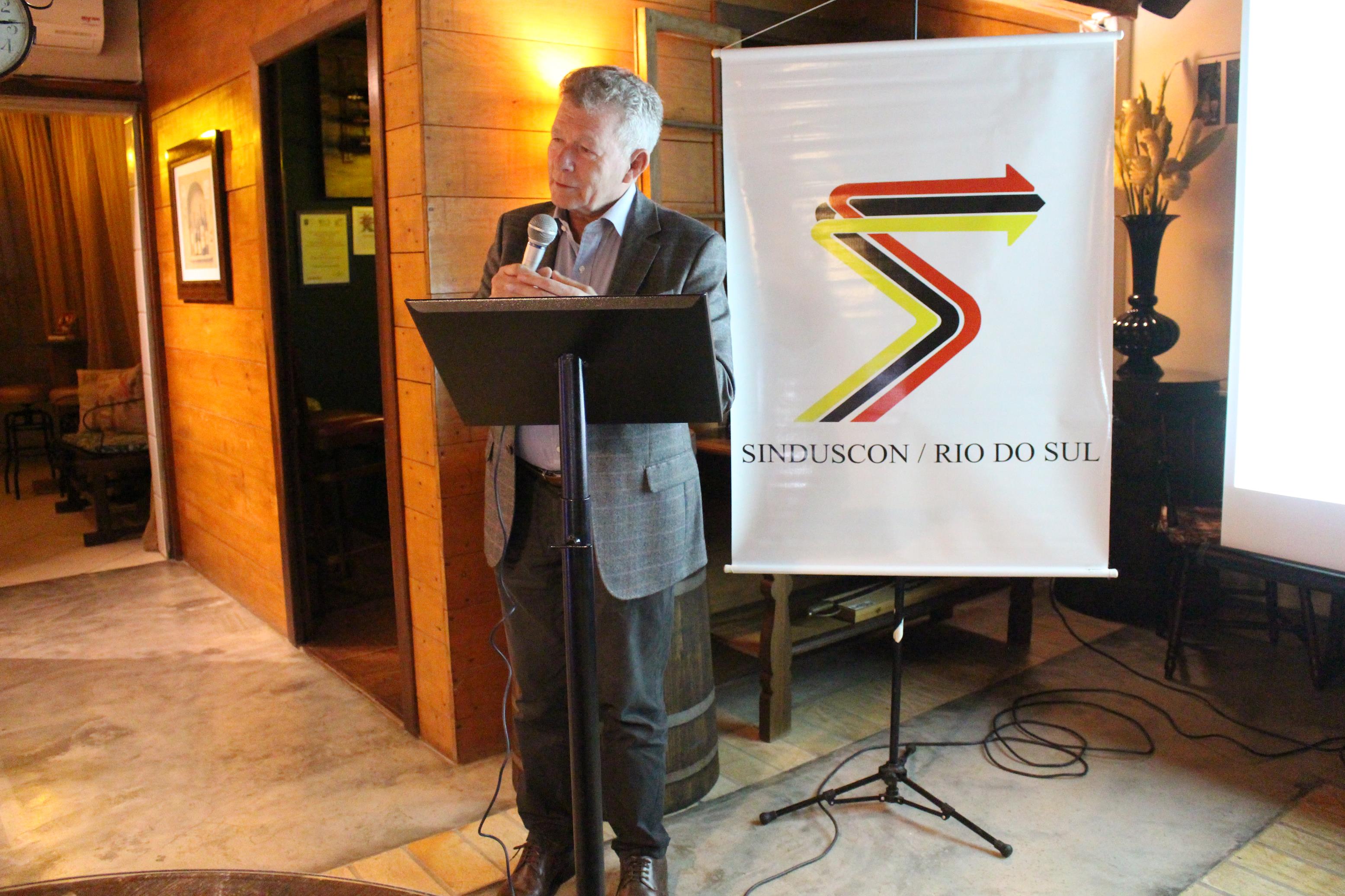 O Sindicato das Indústrias da Construção e do Mobiliário de Rio do Sul (Sinduscon) realizou jantar de posse da gestão 2022/2025, na quinta-feira, 16, com a participação do vice-presidente da Fiesc para o Alto Vale do Itajaí, André Armin Odebrecht. Para a próxima gestão, Osmar Peters assume no lugar de Marcos Melchioretto, que passa a ser vice.